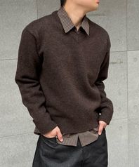 캐시라이크 브이넥 크롭 니트 멜란지 브라운