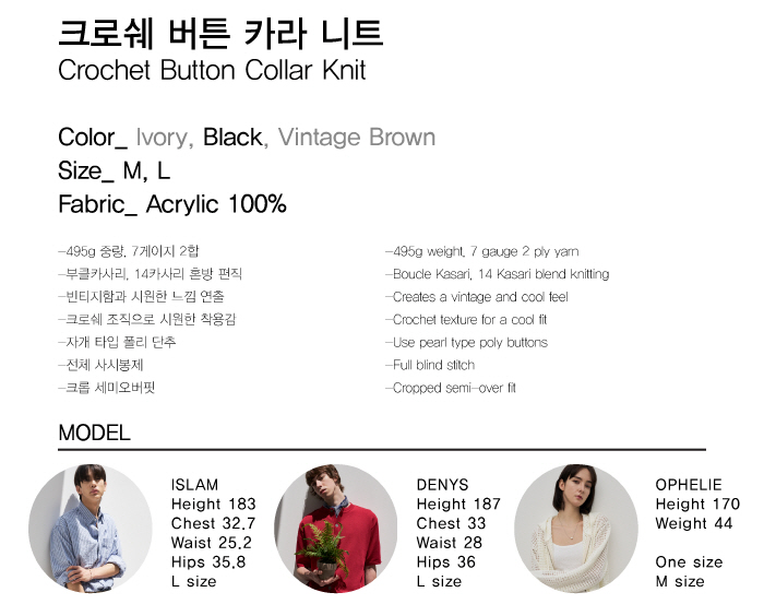 크로쉐 버튼 카라 니트 빈티지 브라운