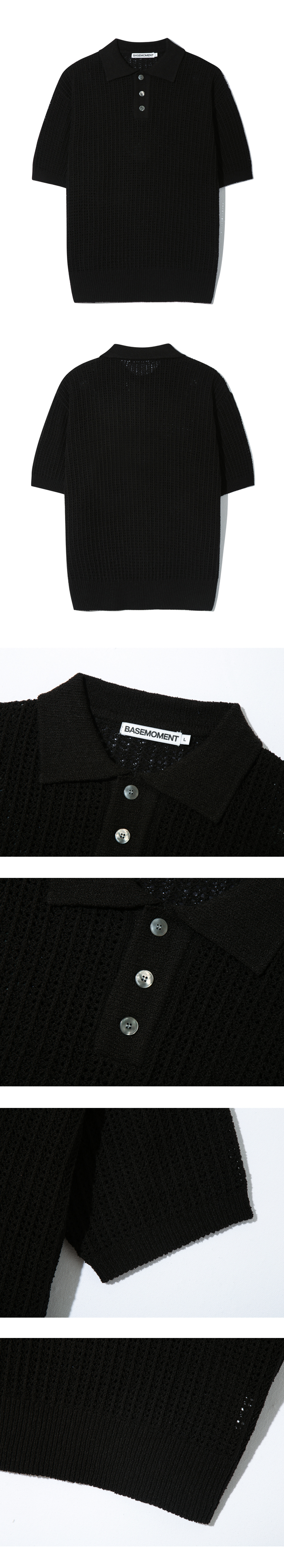 크로쉐 버튼 카라 니트 블랙