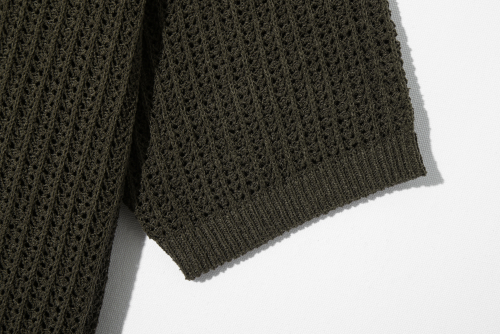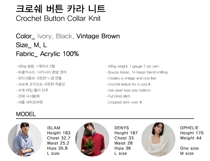 크로쉐 버튼 카라 니트 빈티지 브라운