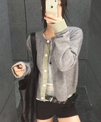 우먼즈 에센셜 라운드 넥 가디건 [블루]