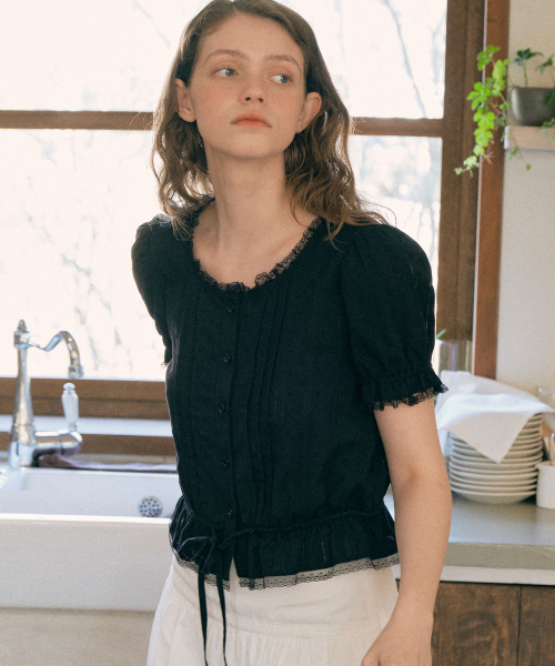 FRILL SHIRRING BLOUSE BLACK