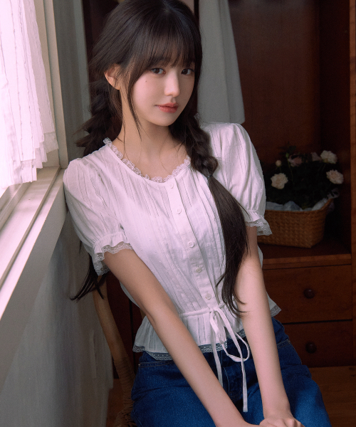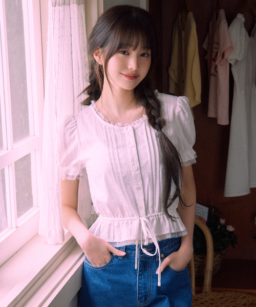 FRILL SHIRRING BLOUSE WHITE