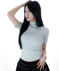 텐셀 베이직 골지 모크넥 반팔티 [라이트 그레이]