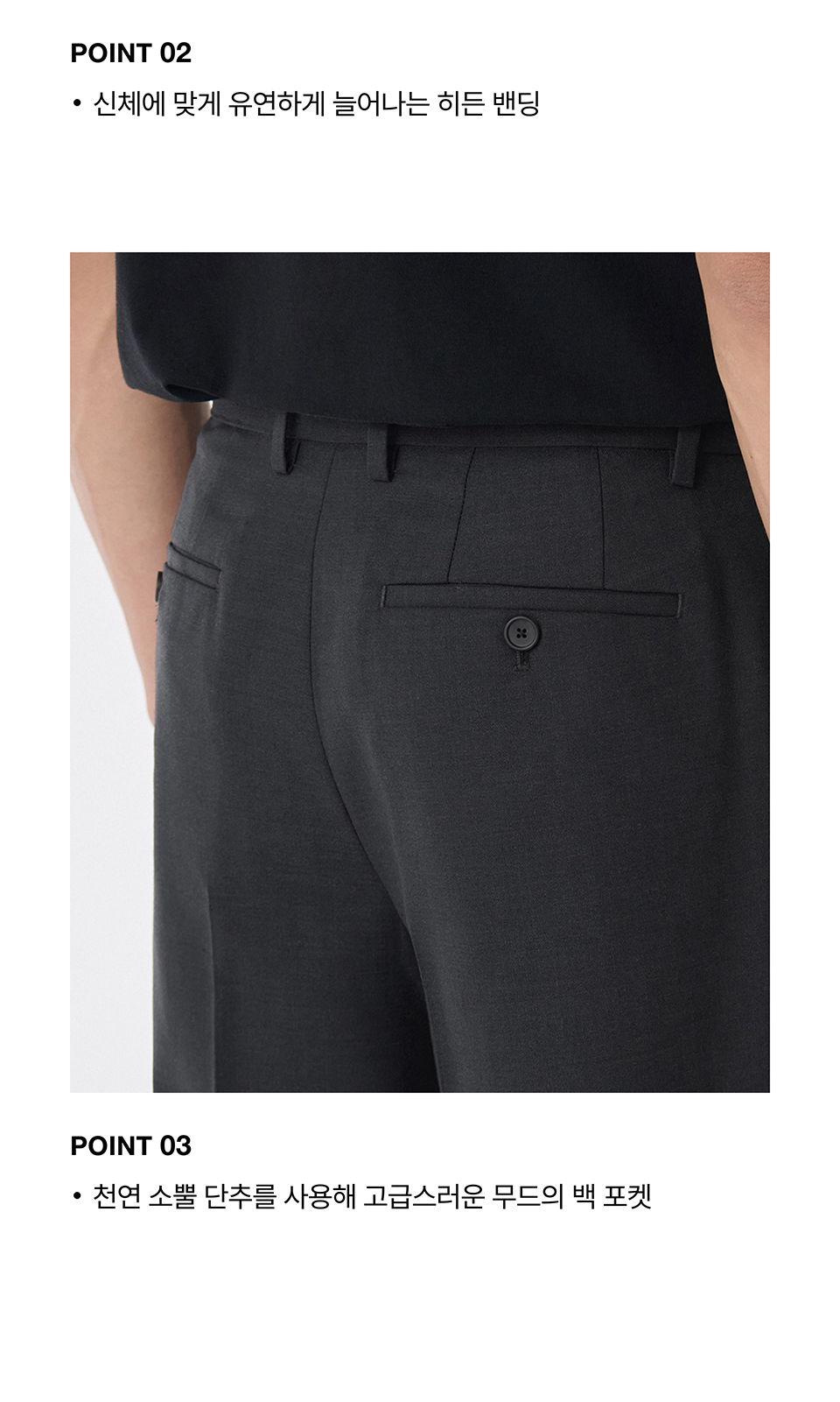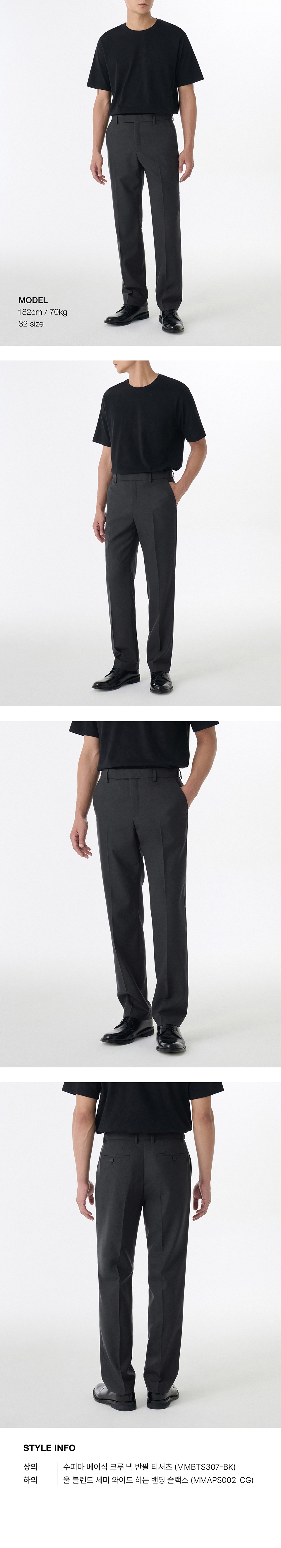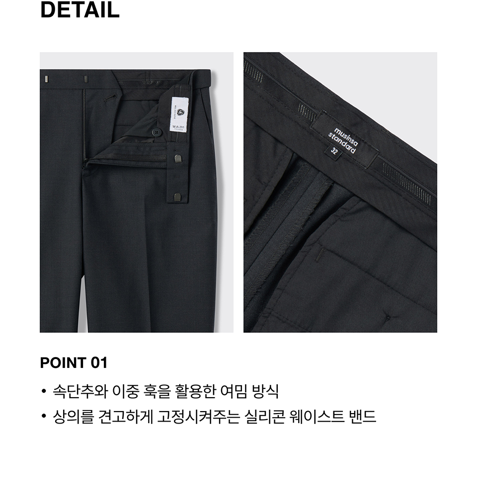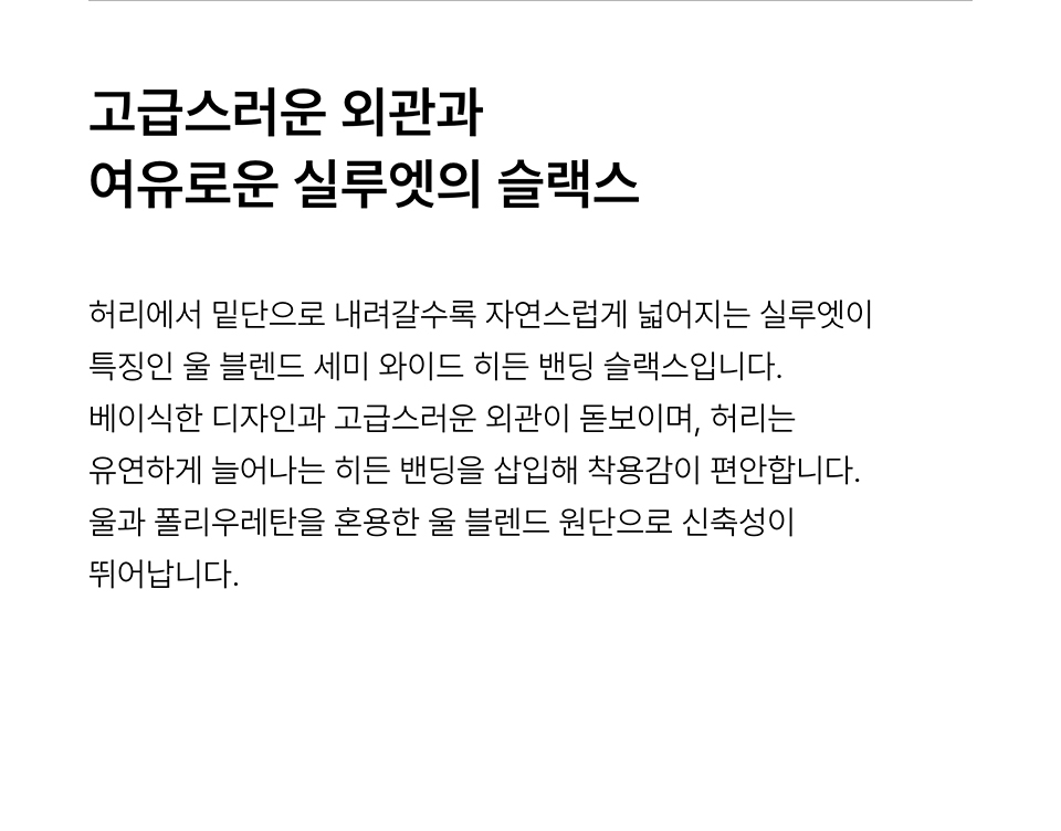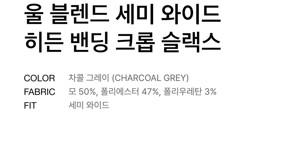 울 블렌드 세미 와이드 히든 밴딩 슬랙스 [차콜 그레이]