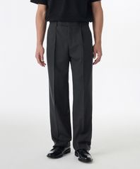 울 블렌드 와이드 히든 밴딩 슬랙스 [차콜 그레이]