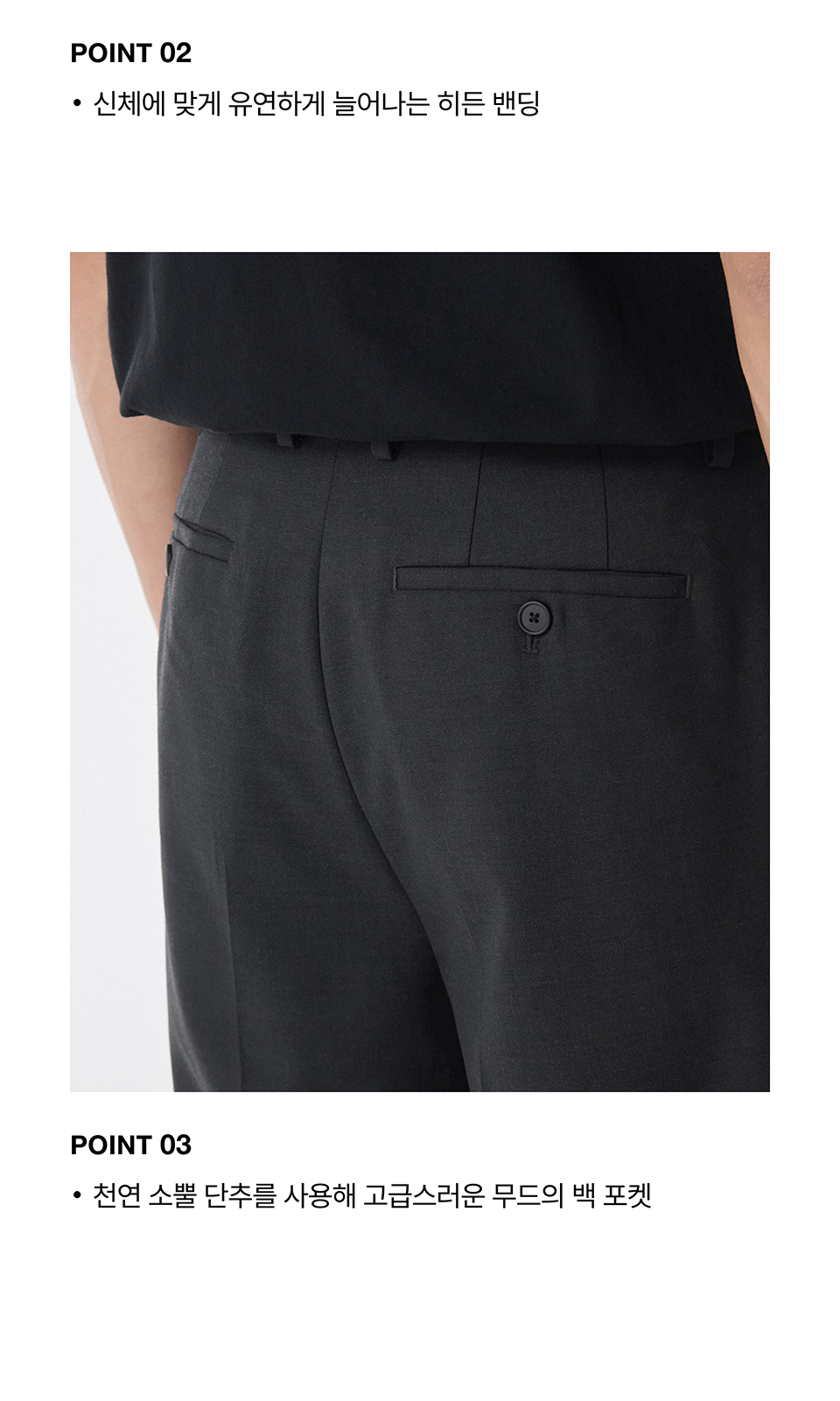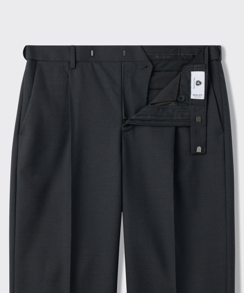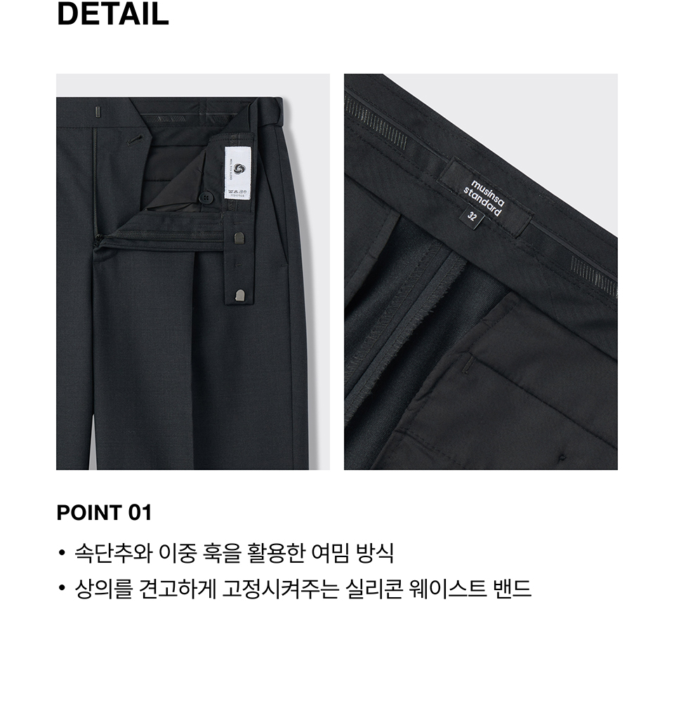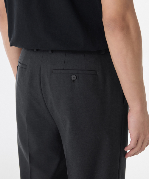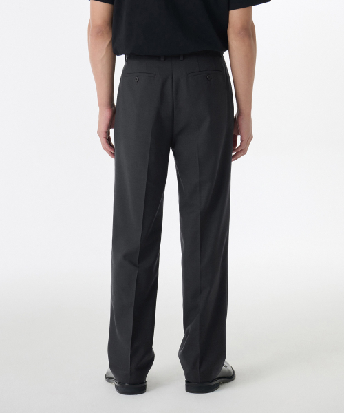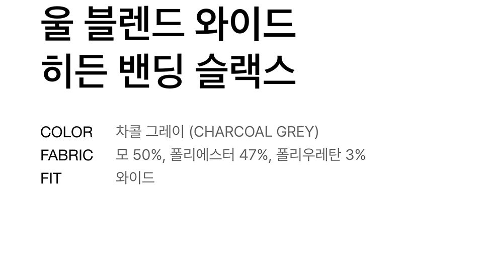 울 블렌드 세미 와이드 히든 밴딩 슬랙스 [차콜 그레이]