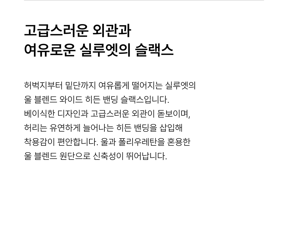 울 블렌드 와이드 히든 밴딩 슬랙스 [차콜 그레이]