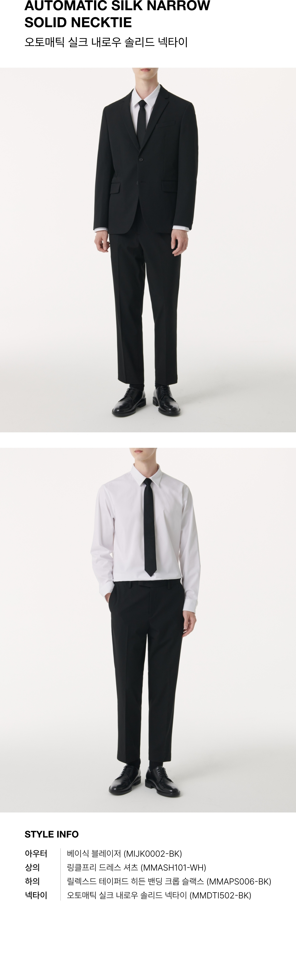 오토매틱 실크 슬림 솔리드 넥타이 [블랙]