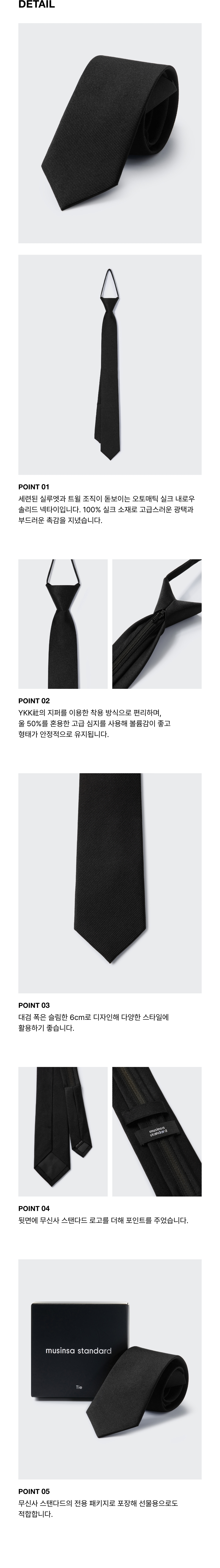 오토매틱 실크 내로우 솔리드 넥타이 [블랙]