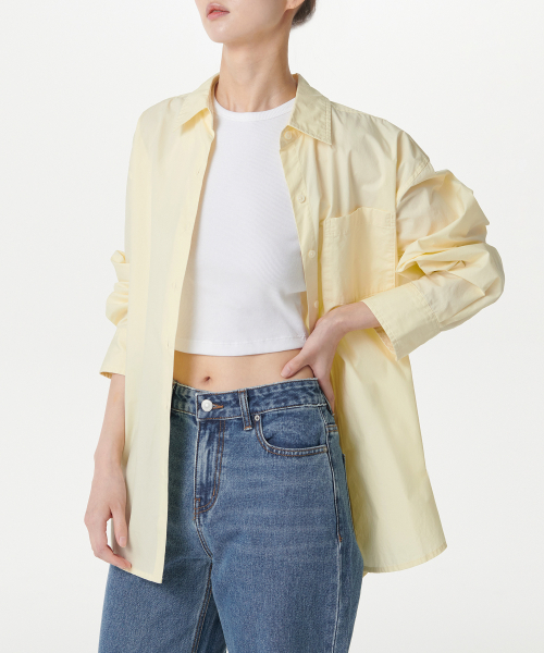 우먼즈 오버사이즈 워시드 포플린 셔츠 [레몬]