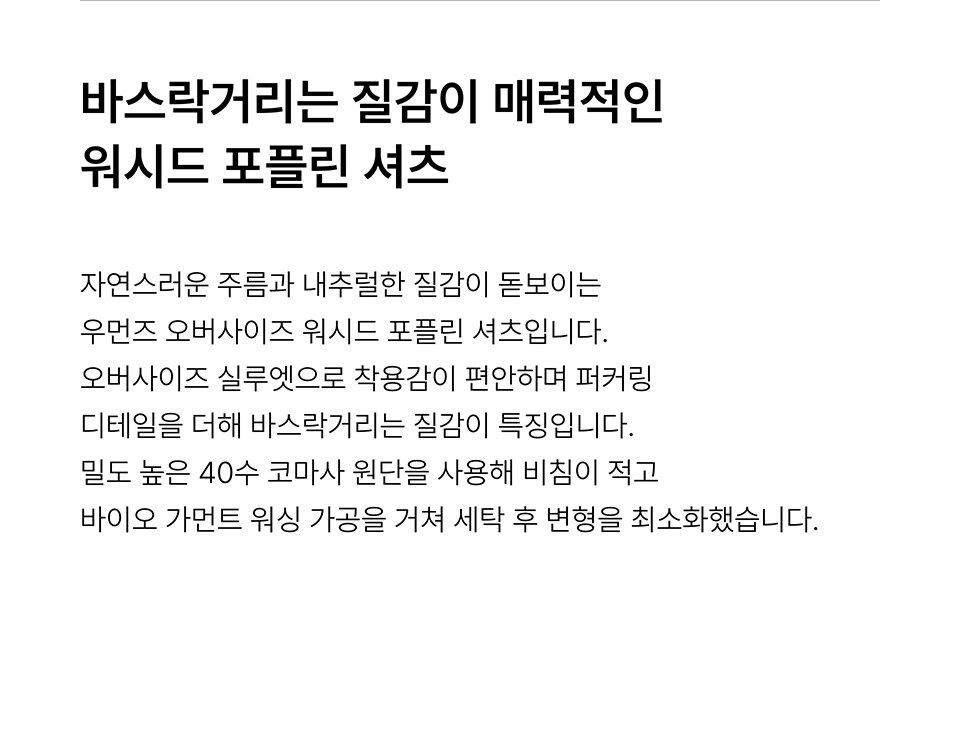 우먼즈 오버사이즈 워시드 포플린 셔츠 [화이트]