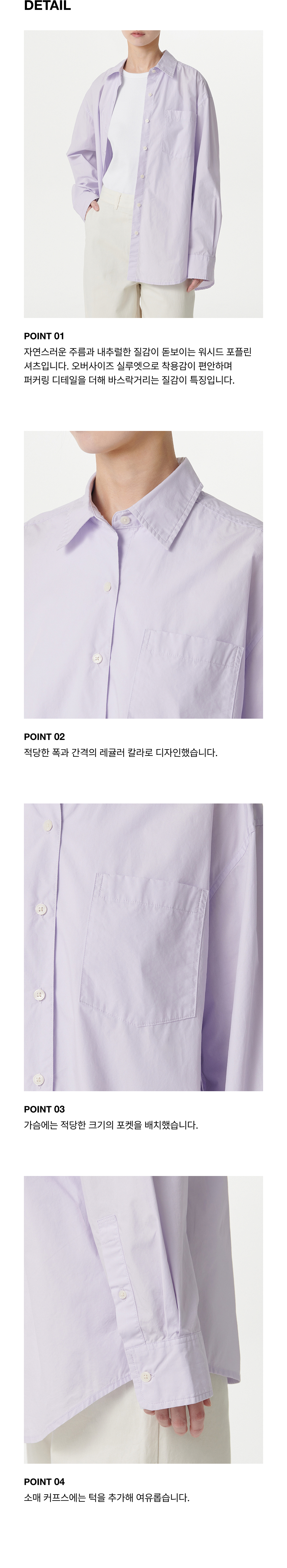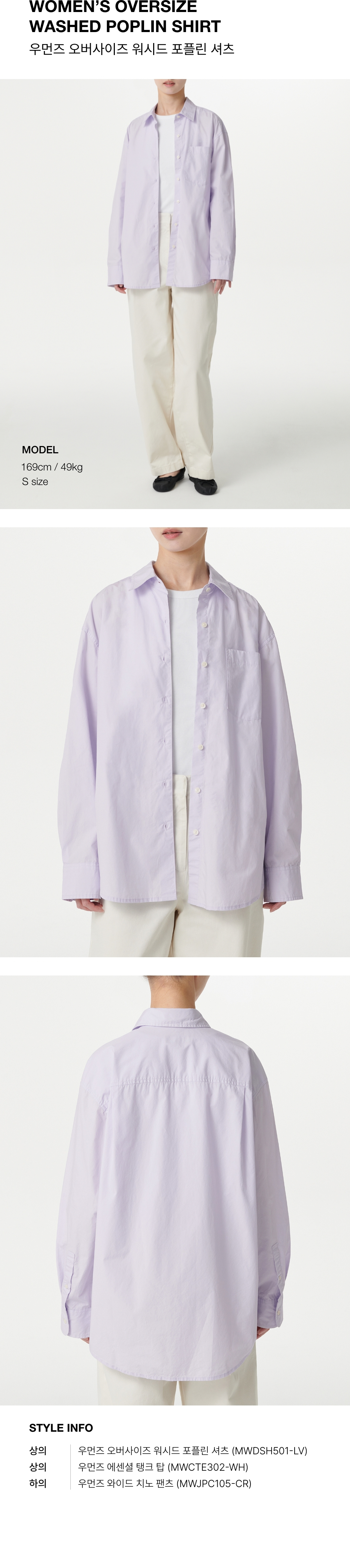 우먼즈 오버사이즈 워시드 포플린 셔츠 [라벤더]