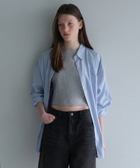 우먼즈 오버사이즈 스트라이프 실키 셔츠 [블루]