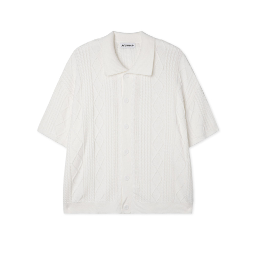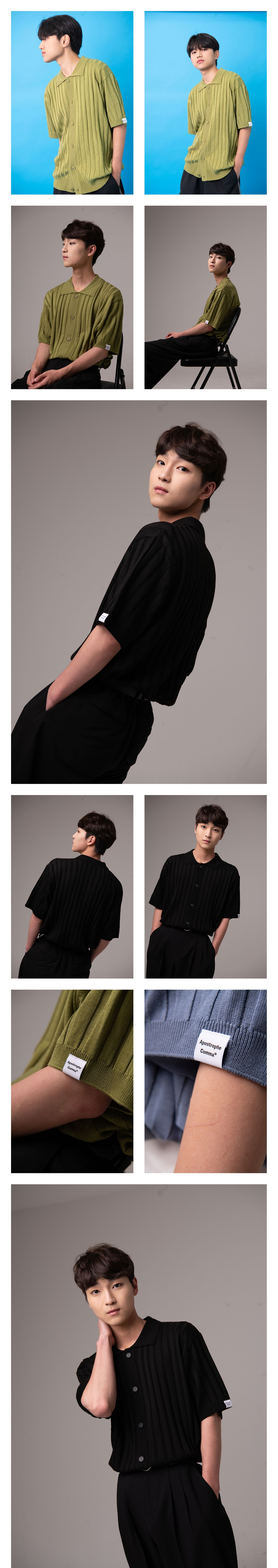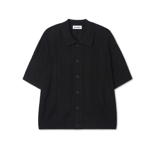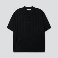 버티칼 골지 카라 반팔 니트 가디건_블랙