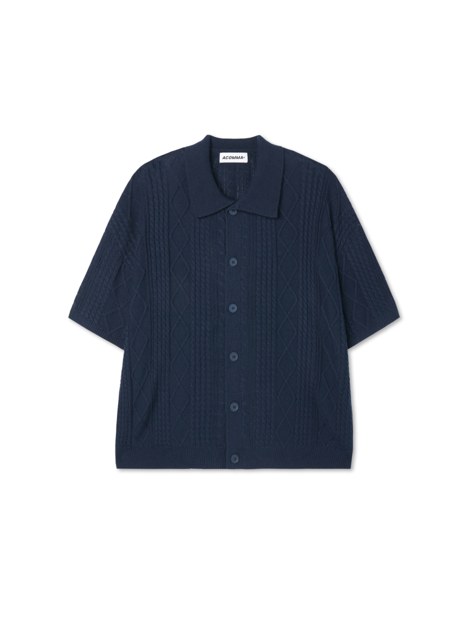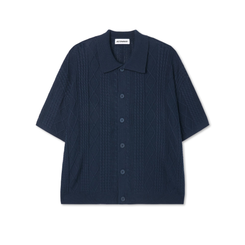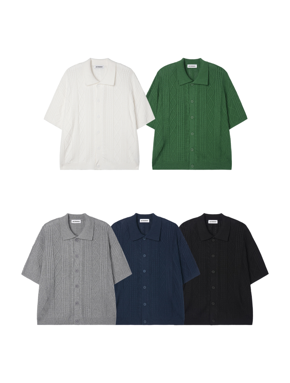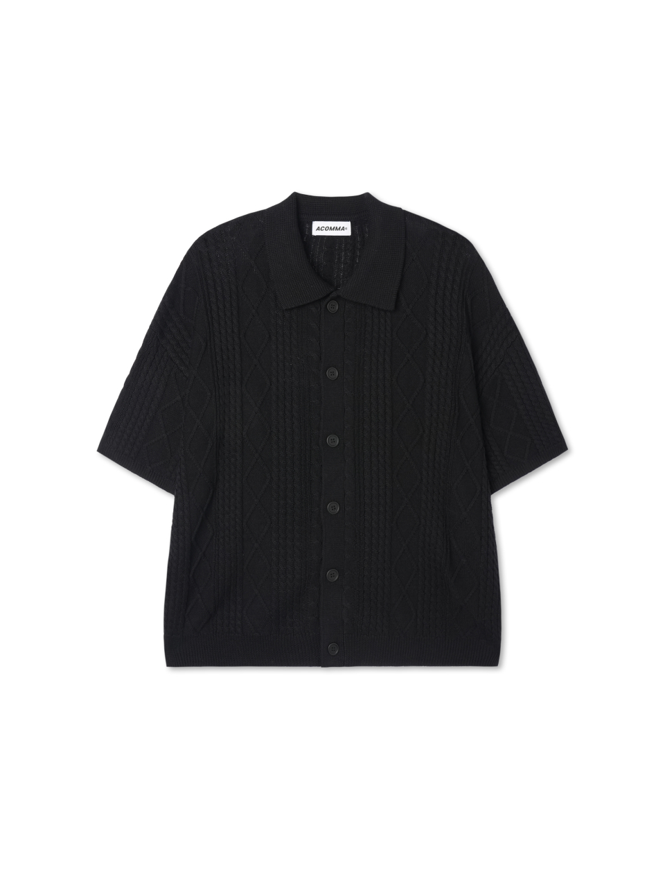 버티칼 다이아 반팔 카라 니트 가디건_블랙