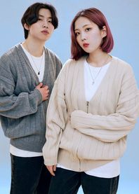 버티칼 라인 집업 가디건 (크림)