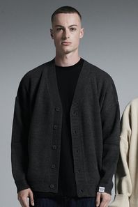 슬리브 포인트 니트 가디건 (다크그레이)