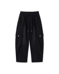 버티칼 포켓 카고 밴딩 와이드 팬츠_블랙