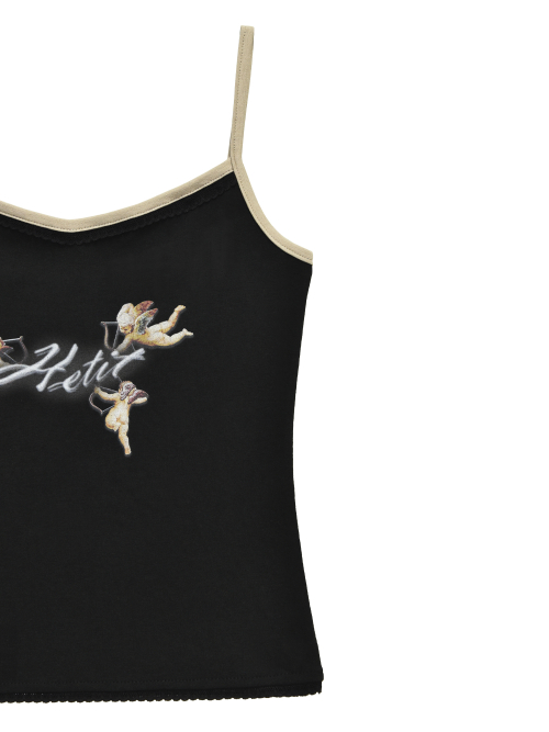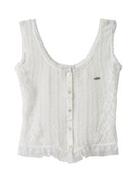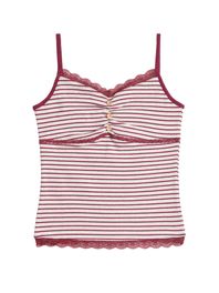 버튼 스트라이프 레이스 탱크 탑 (베리)