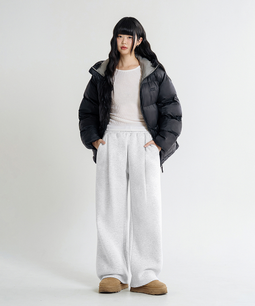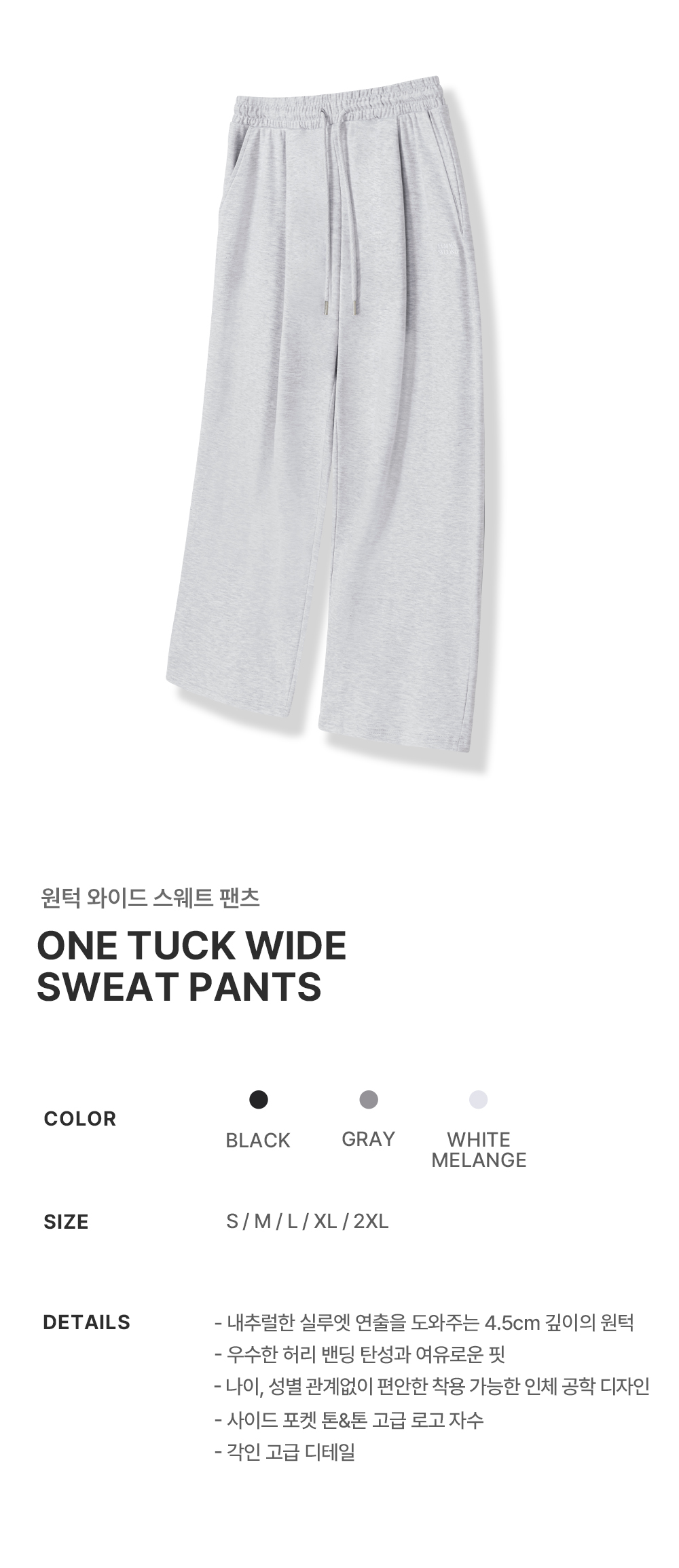 원턱 와이드 스웨트 팬츠 [화이트 멜란지]