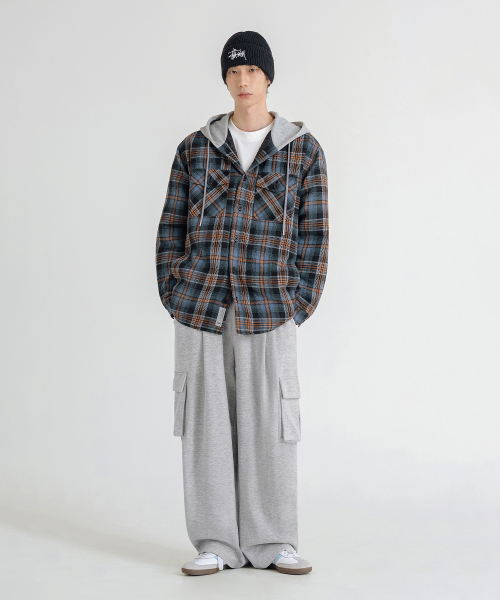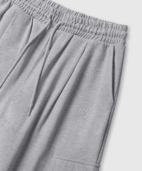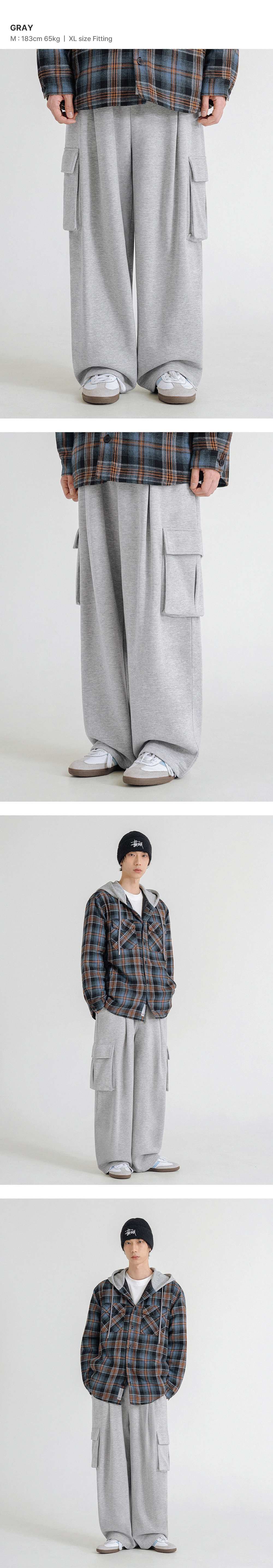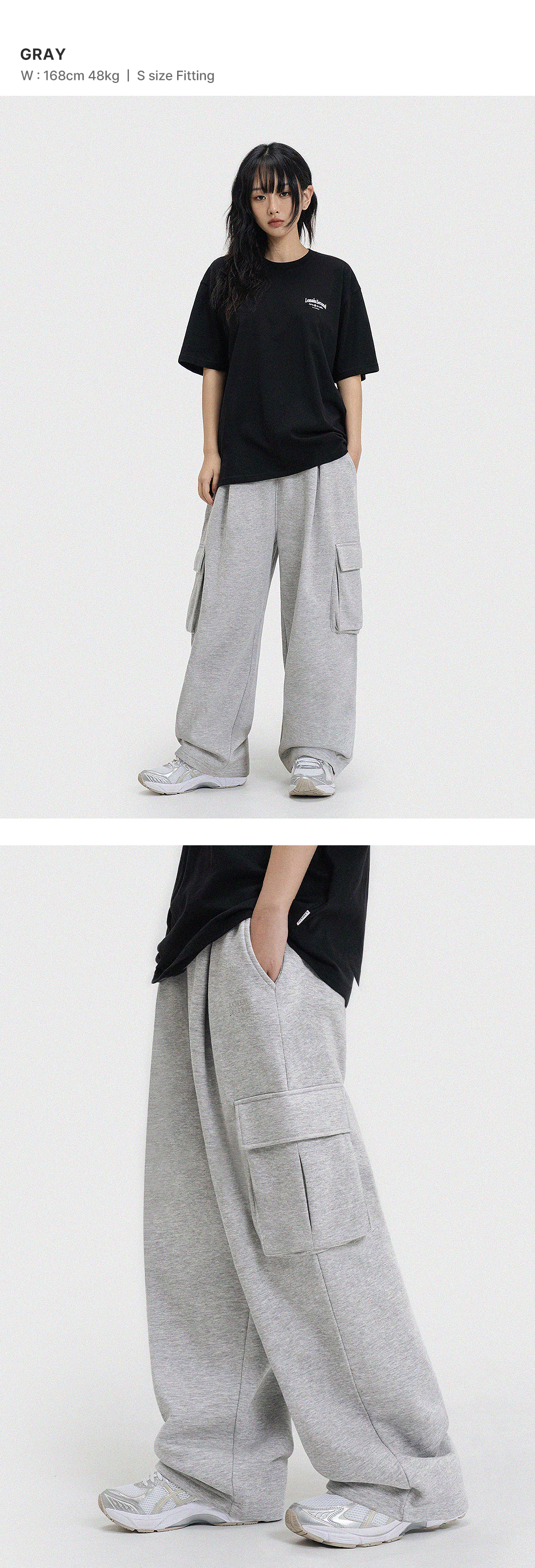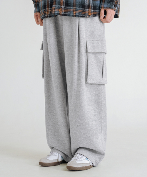 원턱 와이드 카고 스웨트 팬츠 [그레이]