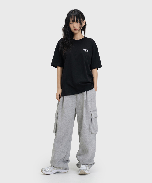 원턱 와이드 카고 스웨트 팬츠 [블랙]