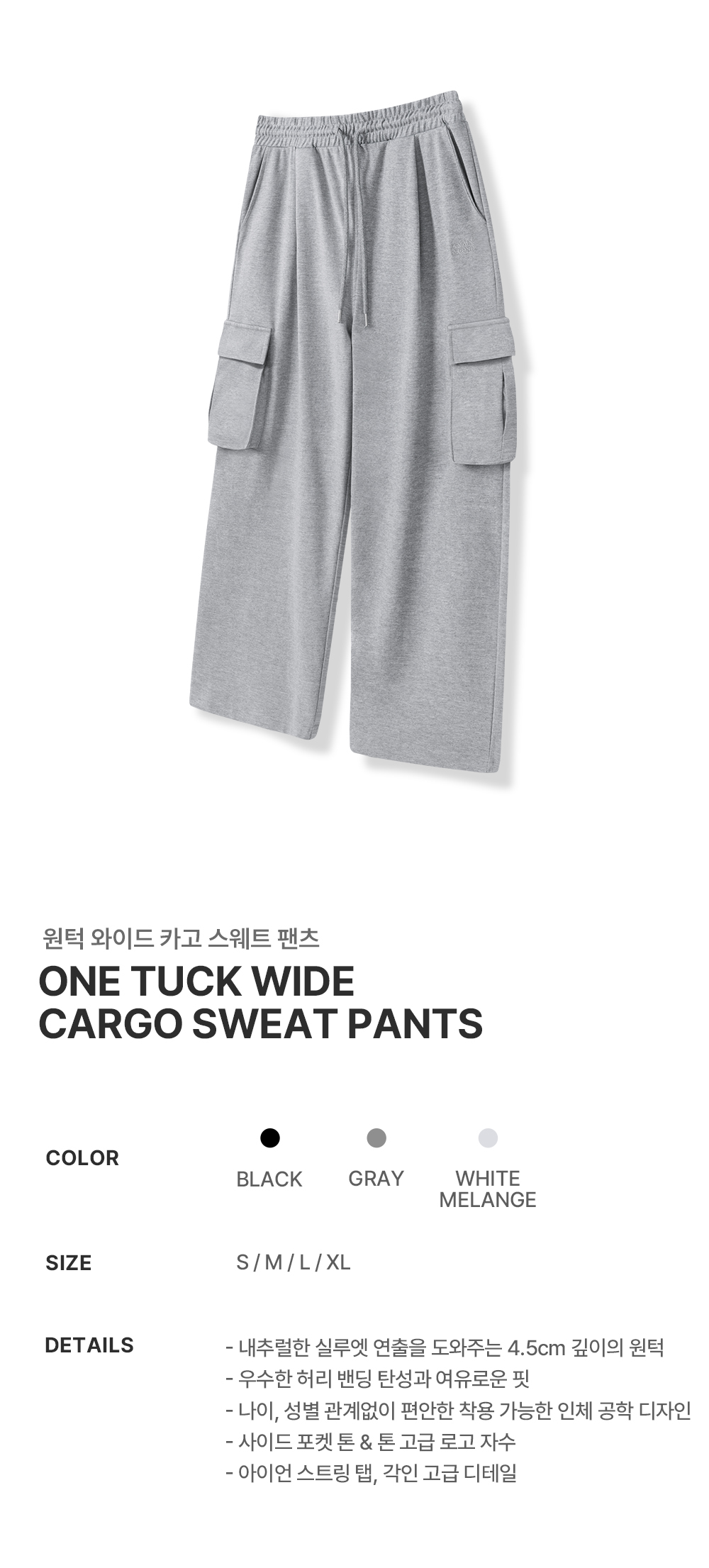 원턱 와이드 카고 스웨트 팬츠_3COLOR