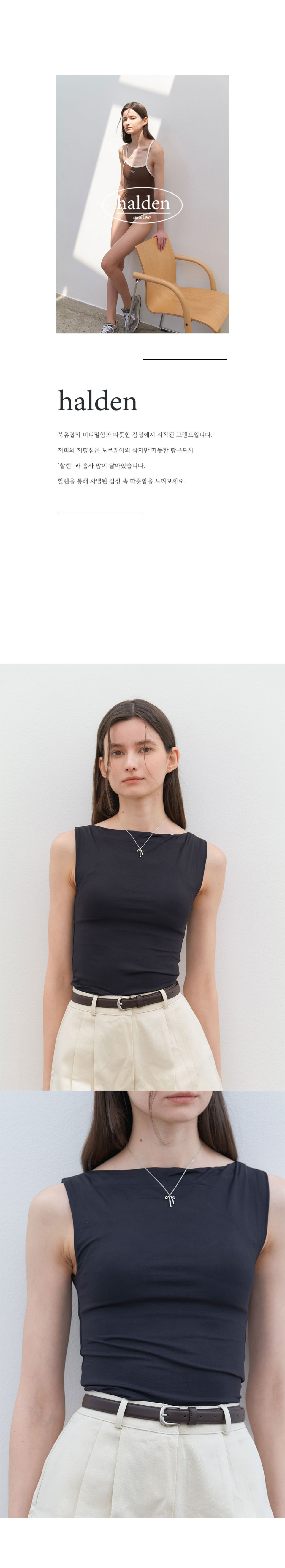 할렌(HALDEN)은 북유럽의 미니멀하고 따뜻한 감성에서 시작된 브랜드입니다. 노르웨이의 작지만 따뜻한 항구도시 '할렌'의 모습을 추구합니다.