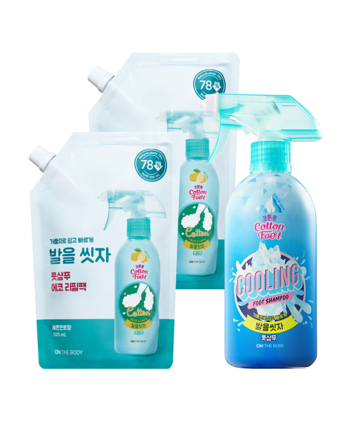 코튼풋 발을씻자 풋샴푸(레몬/자몽/쿨링) 510ml + 리필 500ml 2개