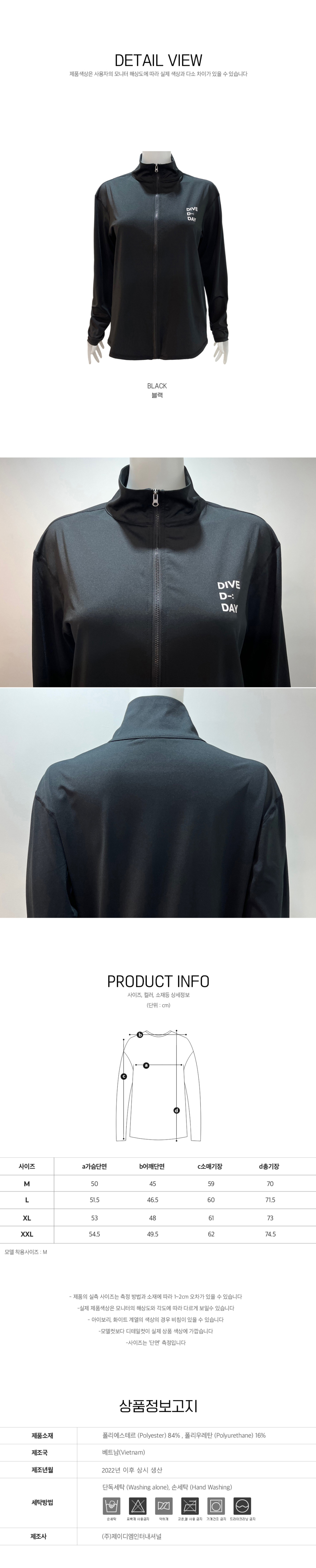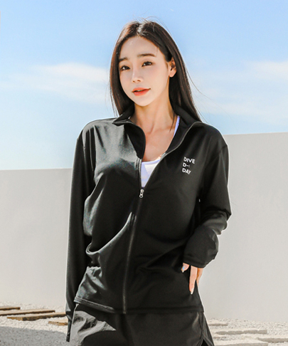 여성용 루즈핏 집업 래쉬가드 B705 블랙
