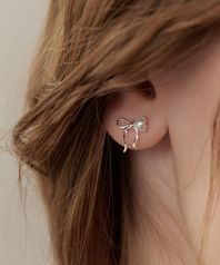 (실버925) 원 사이드 하트 리본 귀걸이 EC3086