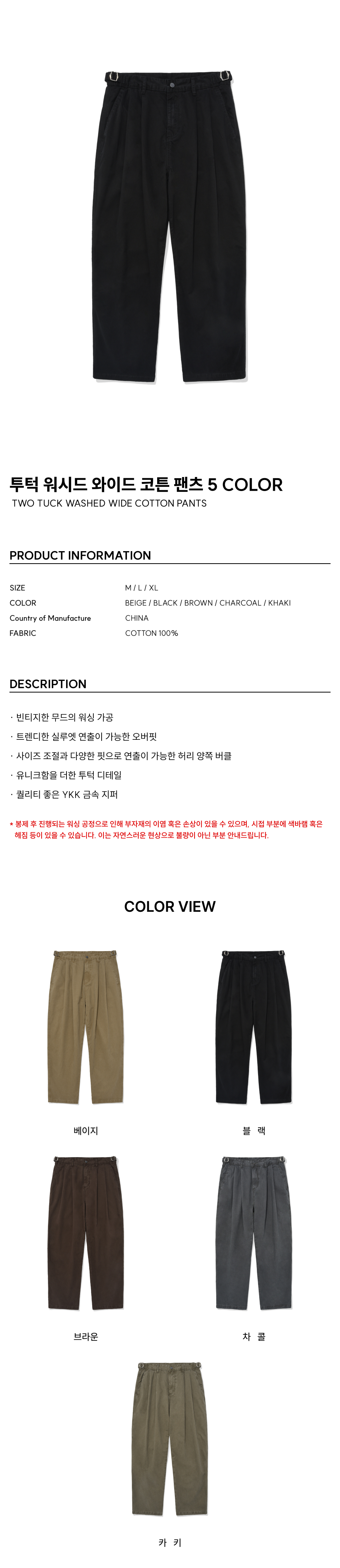 투턱 워시드 와이드 코튼 팬츠 블랙