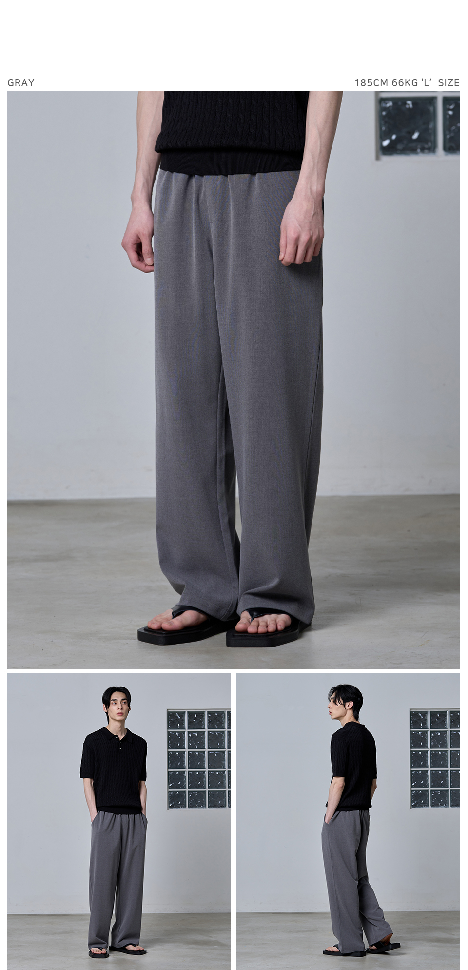 원턱 와이드 밴딩 슬랙스 [그레이]