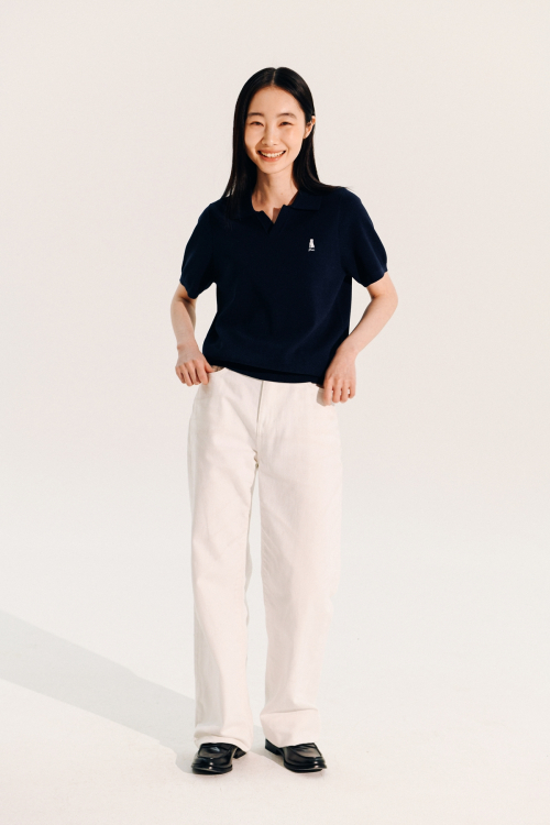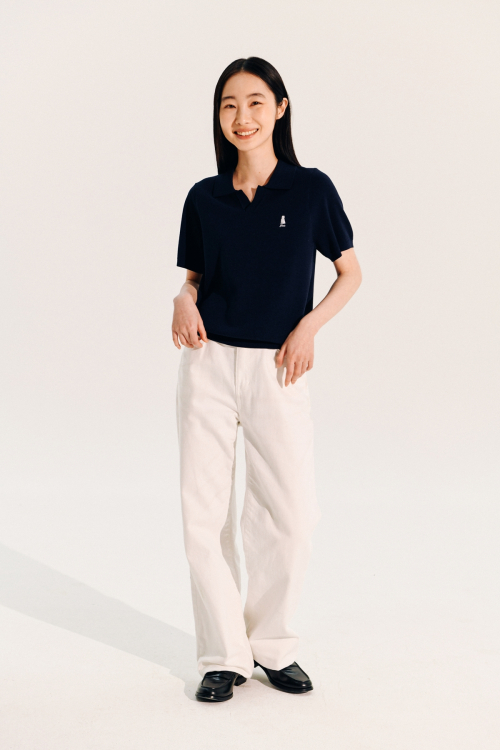 PWC 레이스 트림 아일렛 숏슬리브 티_네이비