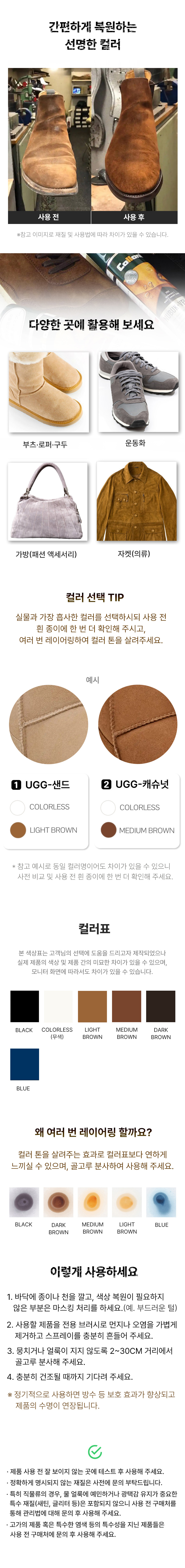 스웨이드 색상 복원 방수 스프레이 200ml 누벅 운동화 부츠