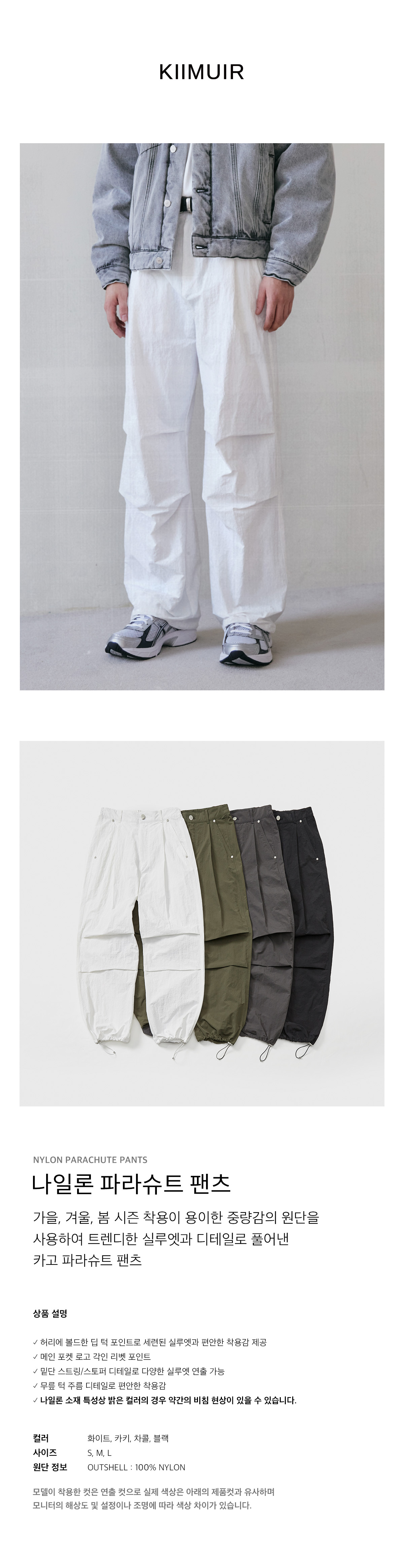 (4 COLOR) 딥 원턱 나일론 파라슈트 팬츠