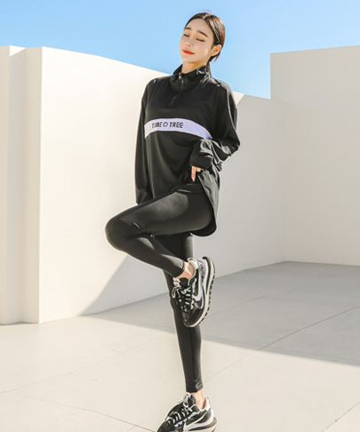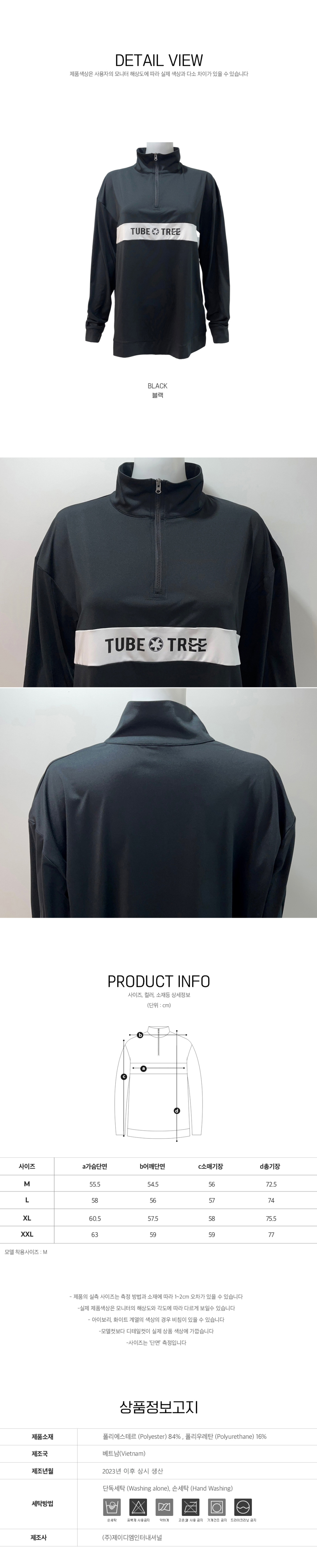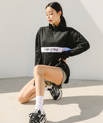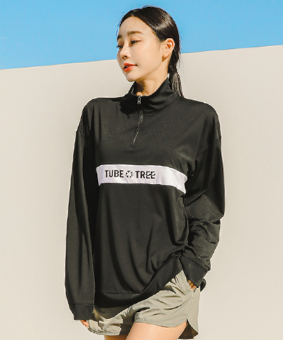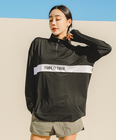 여성용 루즈핏 아노락 반집업 래쉬가드 B722 블랙