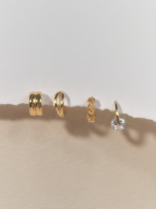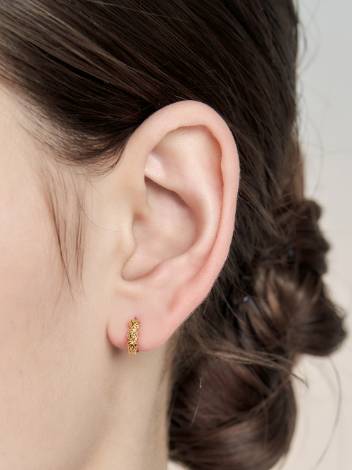 우먼즈 큐빅 미니 후프 이어링 [실버]