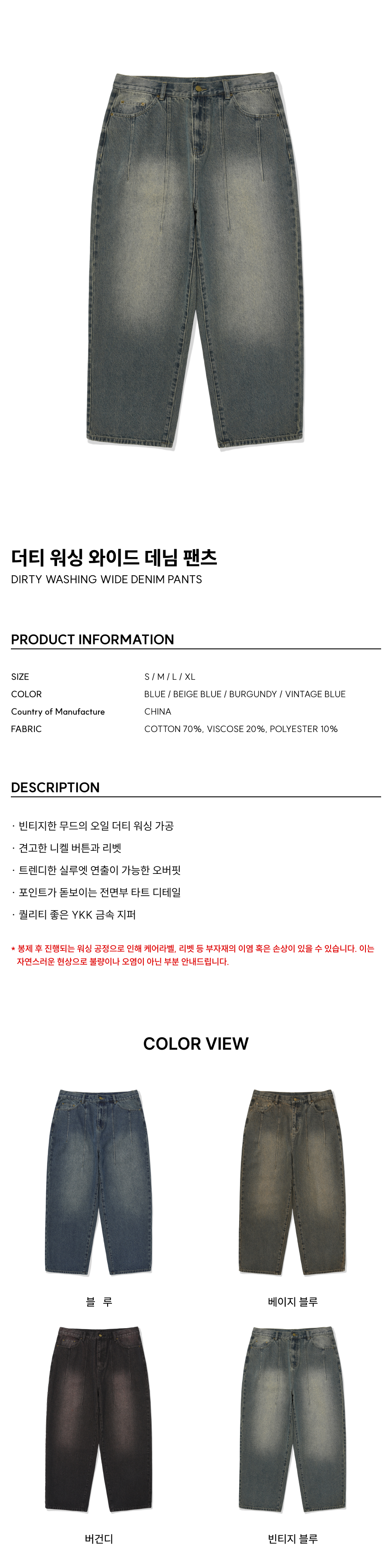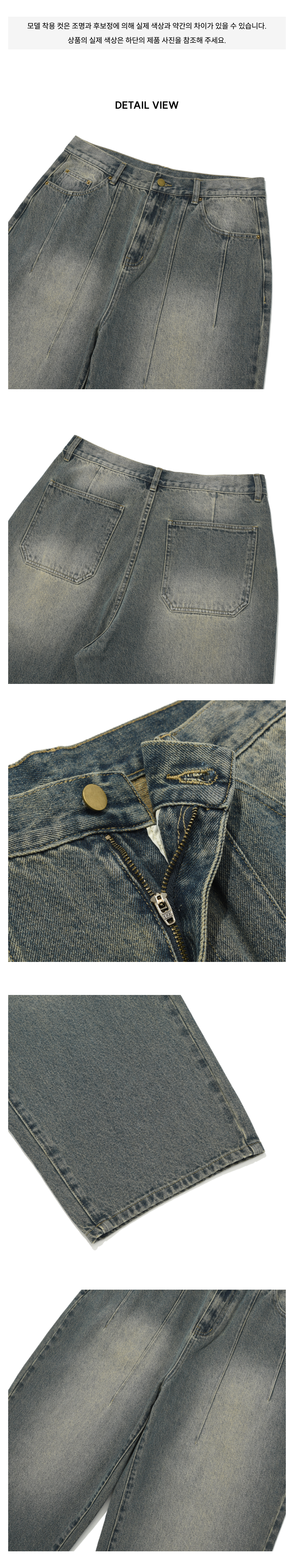 더티 워싱 와이드 데님 팬츠 빈티지 블루