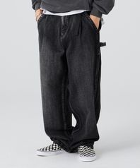 바이오스톤 워싱 와이드 데님 팬츠 워시드 블랙