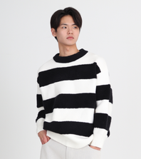 스트라이프 라운드 오버핏 니트 2color (블랙)