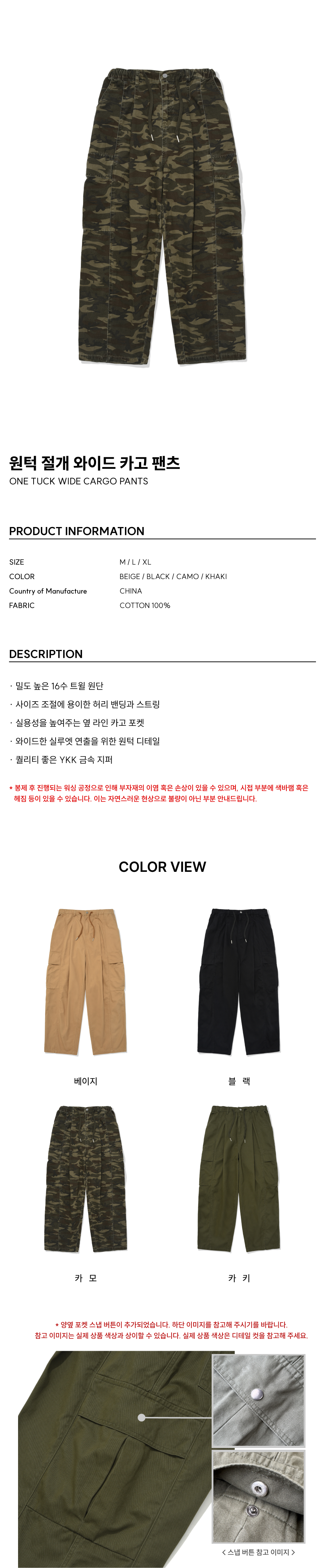 원턱 절개 와이드 카고 팬츠 카모