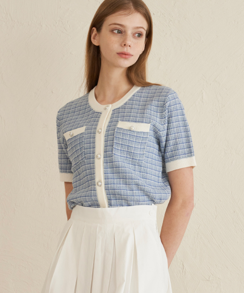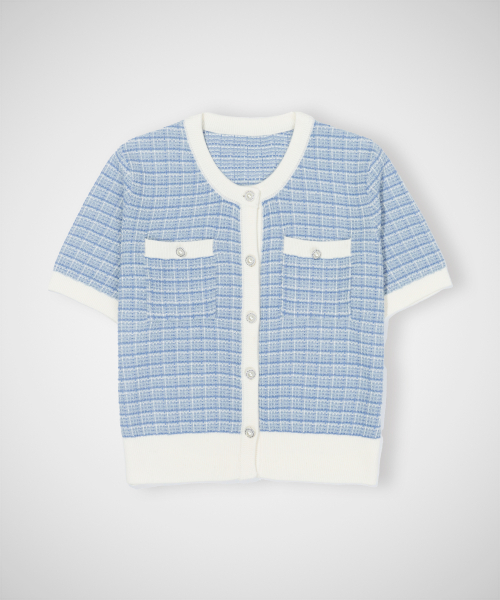캄포레 트위드 반팔 니트 가디건_ZE2SW664_BLU
