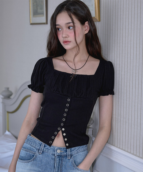 Puff Shirring Ribbon T-shirt [Black]