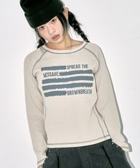 W SLOGAN WAFFLE RAGLAN TEE - BEIGE