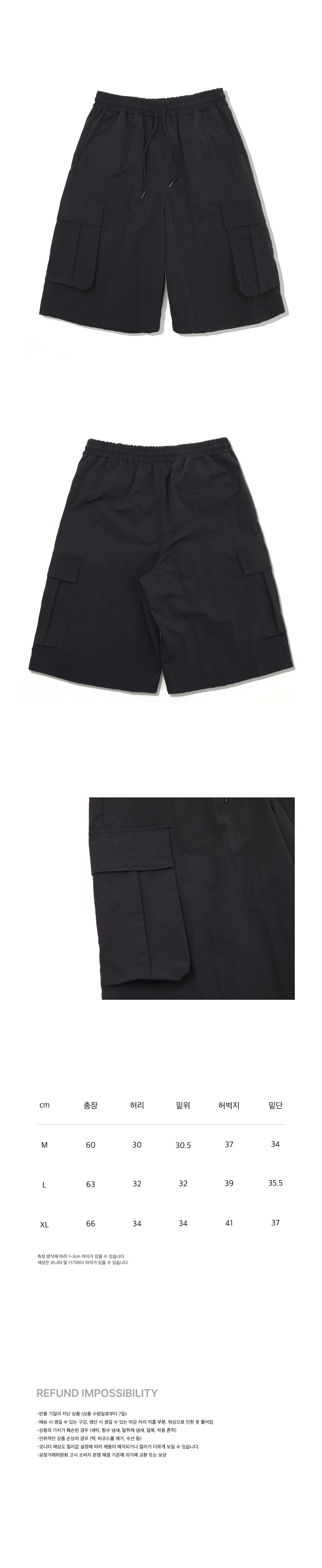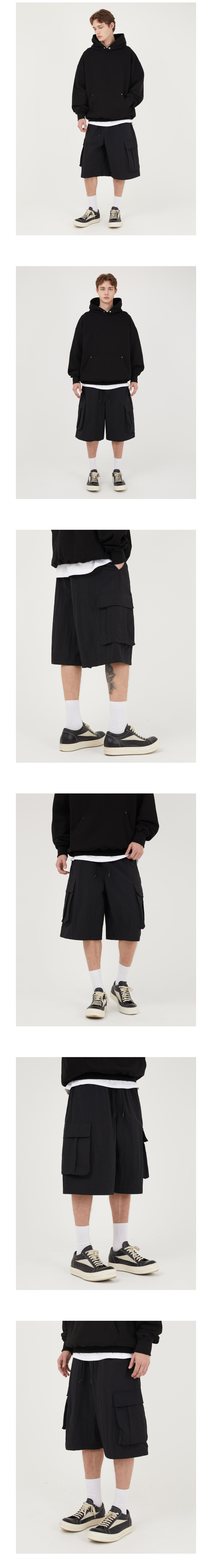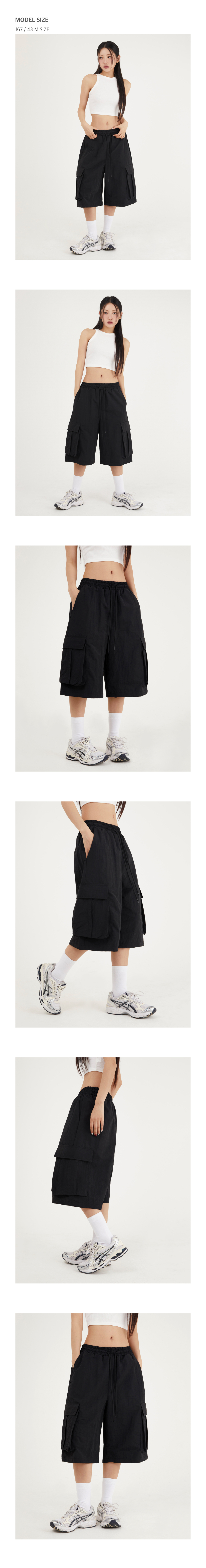 나일론 카고 와이드 버뮤다 팬츠 [블랙]