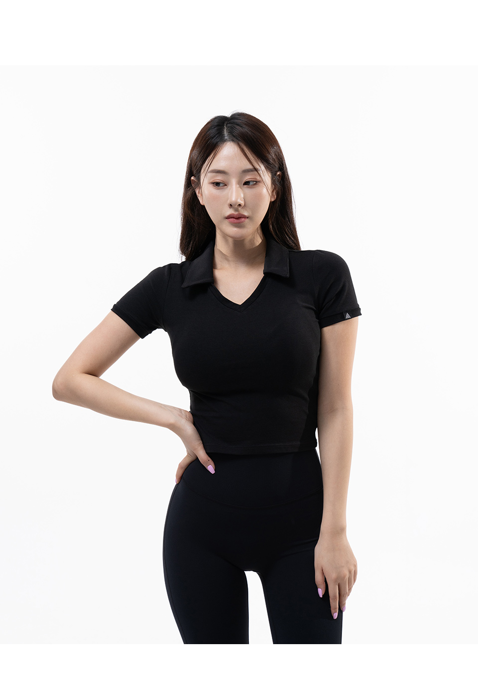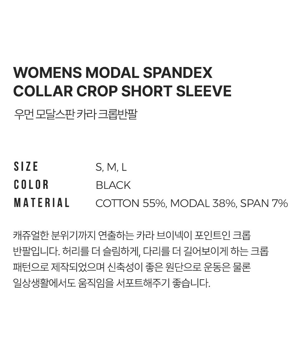 P5018 우먼 모달스판 카라 크롭반팔 [블랙]
