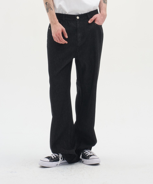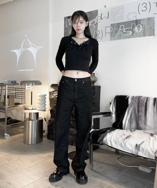 레더 패치 데님 카라 럭비 맨투맨_피그먼트 차콜