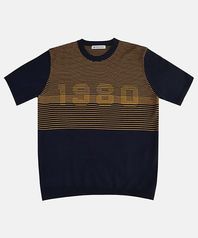 1980 배색 컬러블록 니트 네이비